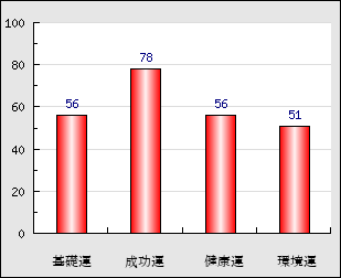 環境運 家庭や職場等での援助運・環境運を司ります。これが良いと配偶者や子供・職場の同僚などから助力が得られやすく、悪いと波乱・不和・孤独などがあります。 51点
