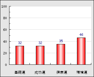 環境運 家庭や職場等での援助運・環境運を司ります。これが良いと配偶者や子供・職場の同僚などから助力が得られやすく、悪いと波乱・不和・孤独などがあります。 46点