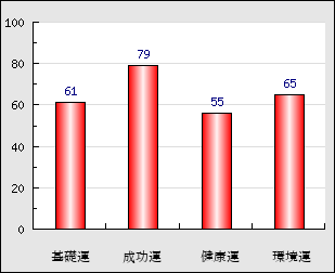 環境運 家庭や職場等での援助運・環境運を司ります。これが良いと配偶者や子供・職場の同僚などから助力が得られやすく、悪いと波乱・不和・孤独などがあります。 65点