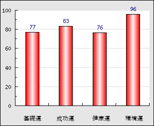 環境運 家庭や職場等での援助運・環境運を司ります。これが良いと配偶者や子供・職場の同僚などから助力が得られやすく、悪いと波乱・不和・孤独などがあります。 96点