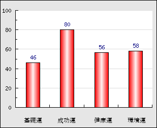 成功運 目的に対する成功運の強さをあらわします。この点数が高いほど自分の思い通りに成功し、逆に悪いと逆境・批判・障害などに苦心します。 80点