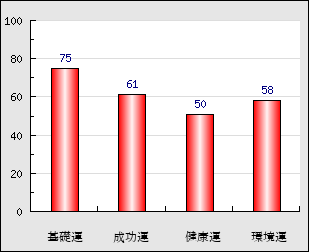 成功運 目的に対する成功運の強さをあらわします。この点数が高いほど自分の思い通りに成功し、逆に悪いと逆境・批判・障害などに苦心します。 61点