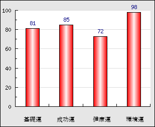 環境運 家庭や職場等での援助運・環境運を司ります。これが良いと配偶者や子供・職場の同僚などから助力が得られやすく、悪いと波乱・不和・孤独などがあります。 98点