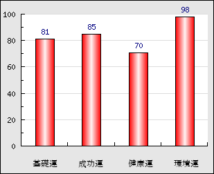 環境運 家庭や職場等での援助運・環境運を司ります。これが良いと配偶者や子供・職場の同僚などから助力が得られやすく、悪いと波乱・不和・孤独などがあります。 98点