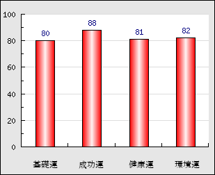 環境運 家庭や職場等での援助運・環境運を司ります。これが良いと配偶者や子供・職場の同僚などから助力が得られやすく、悪いと波乱・不和・孤独などがあります。 82点