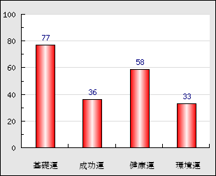 環境運 家庭や職場等での援助運・環境運を司ります。これが良いと配偶者や子供・職場の同僚などから助力が得られやすく、悪いと波乱・不和・孤独などがあります。 33点
