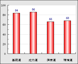 成功運 目的に対する成功運の強さをあらわします。この点数が高いほど自分の思い通りに成功し、逆に悪いと逆境・批判・障害などに苦心します。 86点