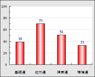 成功運 目的に対する成功運の強さをあらわします。この点数が高いほど自分の思い通りに成功し、逆に悪いと逆境・批判・障害などに苦心します。 70点