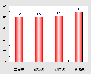 環境運 家庭や職場等での援助運・環境運を司ります。これが良いと配偶者や子供・職場の同僚などから助力が得られやすく、悪いと波乱・不和・孤独などがあります。 89点
