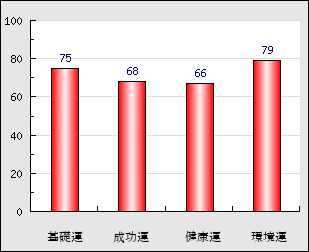 | 環境運 | 家庭や職場等での援助運・環境運を司ります。これが良いと配偶者や子供・職場の同僚などから助力が得られやすく、悪いと波乱・不和・孤独などがあります。 | 79点 |