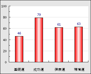 環境運 家庭や職場等での援助運・環境運を司ります。これが良いと配偶者や子供・職場の同僚などから助力が得られやすく、悪いと波乱・不和・孤独などがあります。 63点