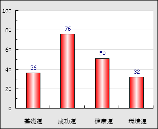 成功運 目的に対する成功運の強さをあらわします。この点数が高いほど自分の思い通りに成功し、逆に悪いと逆境・批判・障害などに苦心します。 76点