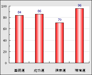 | 環境運 | 家庭や職場等での援助運・環境運を司ります。これが良いと配偶者や子供・職場の同僚などから助力が得られやすく、悪いと波乱・不和・孤独などがあります。 | 96点 |