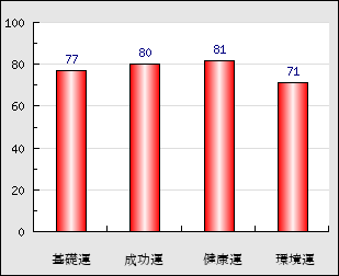 成功運 目的に対する成功運の強さをあらわします。この点数が高いほど自分の思い通りに成功し、逆に悪いと逆境・批判・障害などに苦心します。 80点