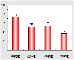 成功運 目的に対する成功運の強さをあらわします。この点数が高いほど自分の思い通りに成功し、逆に悪いと逆境・批判・障害などに苦心します。 52点