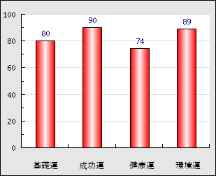 環境運 家庭や職場等での援助運・環境運を司ります。これが良いと配偶者や子供・職場の同僚などから助力が得られやすく、悪いと波乱・不和・孤独などがあります。 89点