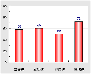 成功運 目的に対する成功運の強さをあらわします。この点数が高いほど自分の思い通りに成功し、逆に悪いと逆境・批判・障害などに苦心します。 60点