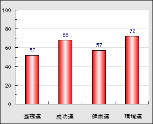 環境運 家庭や職場等での援助運・環境運を司ります。これが良いと配偶者や子供・職場の同僚などから助力が得られやすく、悪いと波乱・不和・孤独などがあります。 72点