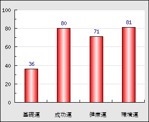 成功運 目的に対する成功運の強さをあらわします。この点数が高いほど自分の思い通りに成功し、逆に悪いと逆境・批判・障害などに苦心します。 80点