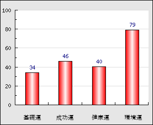 環境運 家庭や職場等での援助運・環境運を司ります。これが良いと配偶者や子供・職場の同僚などから助力が得られやすく、悪いと波乱・不和・孤独などがあります。 79点