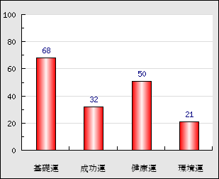 成功運 目的に対する成功運の強さをあらわします。この点数が高いほど自分の思い通りに成功し、逆に悪いと逆境・批判・障害などに苦心します。 32点