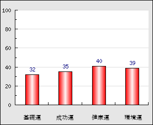 環境運 家庭や職場等での援助運・環境運を司ります。これが良いと配偶者や子供・職場の同僚などから助力が得られやすく、悪いと波乱・不和・孤独などがあります。 39点