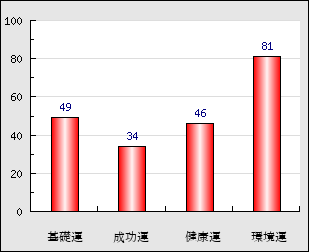 環境運 家庭や職場等での援助運・環境運を司ります。これが良いと配偶者や子供・職場の同僚などから助力が得られやすく、悪いと波乱・不和・孤独などがあります。 81点