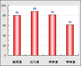 環境運 家庭や職場等での援助運・環境運を司ります。これが良いと配偶者や子供・職場の同僚などから助力が得られやすく、悪いと波乱・不和・孤独などがあります。 61点