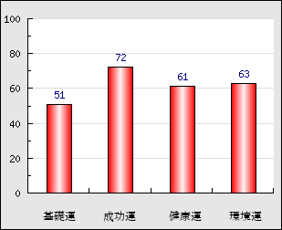 成功運 目的に対する成功運の強さをあらわします。この点数が高いほど自分の思い通りに成功し、逆に悪いと逆境・批判・障害などに苦心します。 72点