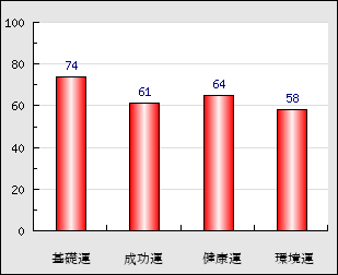 成功運 目的に対する成功運の強さをあらわします。この点数が高いほど自分の思い通りに成功し、逆に悪いと逆境・批判・障害などに苦心します。 61点