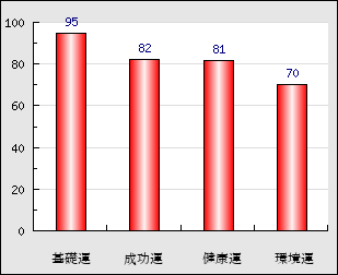 成功運 目的に対する成功運の強さをあらわします。この点数が高いほど自分の思い通りに成功し、逆に悪いと逆境・批判・障害などに苦心します。 82点