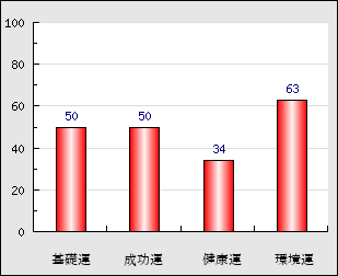 成功運 目的に対する成功運の強さをあらわします。この点数が高いほど自分の思い通りに成功し、逆に悪いと逆境・批判・障害などに苦心します。 50点