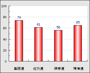 環境運 家庭や職場等での援助運・環境運を司ります。これが良いと配偶者や子供・職場の同僚などから助力が得られやすく、悪いと波乱・不和・孤独などがあります。 65点
