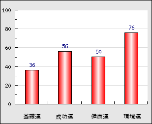 環境運 家庭や職場等での援助運・環境運を司ります。これが良いと配偶者や子供・職場の同僚などから助力が得られやすく、悪いと波乱・不和・孤独などがあります。 76点