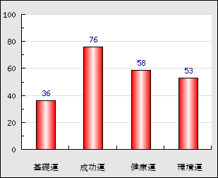 成功運 目的に対する成功運の強さをあらわします。この点数が高いほど自分の思い通りに成功し、逆に悪いと逆境・批判・障害などに苦心します。 76点