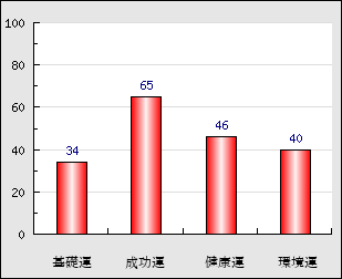 成功運 目的に対する成功運の強さをあらわします。この点数が高いほど自分の思い通りに成功し、逆に悪いと逆境・批判・障害などに苦心します。 65点