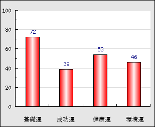 環境運 家庭や職場等での援助運・環境運を司ります。これが良いと配偶者や子供・職場の同僚などから助力が得られやすく、悪いと波乱・不和・孤独などがあります。 46点