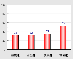 環境運 家庭や職場等での援助運・環境運を司ります。これが良いと配偶者や子供・職場の同僚などから助力が得られやすく、悪いと波乱・不和・孤独などがあります。 53点