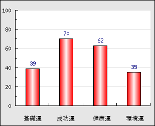 成功運 目的に対する成功運の強さをあらわします。この点数が高いほど自分の思い通りに成功し、逆に悪いと逆境・批判・障害などに苦心します。 70点