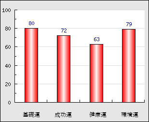 | 環境運 | 家庭や職場等での援助運・環境運を司ります。これが良いと配偶者や子供・職場の同僚などから助力が得られやすく、悪いと波乱・不和・孤独などがあります。 | 79点 |