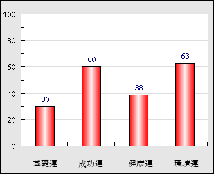 環境運 家庭や職場等での援助運・環境運を司ります。これが良いと配偶者や子供・職場の同僚などから助力が得られやすく、悪いと波乱・不和・孤独などがあります。 63点