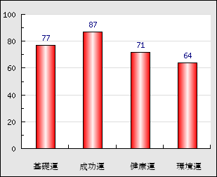 環境運 家庭や職場等での援助運・環境運を司ります。これが良いと配偶者や子供・職場の同僚などから助力が得られやすく、悪いと波乱・不和・孤独などがあります。 64点
