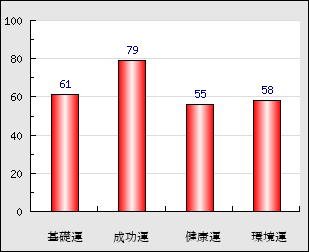 成功運 目的に対する成功運の強さをあらわします。この点数が高いほど自分の思い通りに成功し、逆に悪いと逆境・批判・障害などに苦心します。 79点