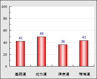 環境運 家庭や職場等での援助運・環境運を司ります。これが良いと配偶者や子供・職場の同僚などから助力が得られやすく、悪いと波乱・不和・孤独などがあります。 43点