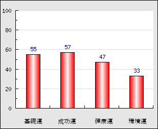 環境運 家庭や職場等での援助運・環境運を司ります。これが良いと配偶者や子供・職場の同僚などから助力が得られやすく、悪いと波乱・不和・孤独などがあります。 33点