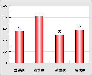 成功運 目的に対する成功運の強さをあらわします。この点数が高いほど自分の思い通りに成功し、逆に悪いと逆境・批判・障害などに苦心します。 82点