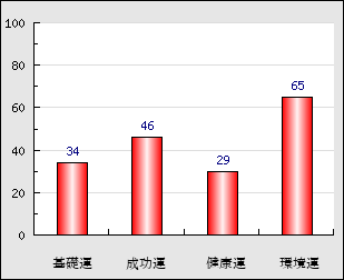 環境運 家庭や職場等での援助運・環境運を司ります。これが良いと配偶者や子供・職場の同僚などから助力が得られやすく、悪いと波乱・不和・孤独などがあります。 65点