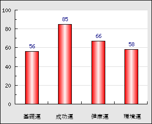 成功運 目的に対する成功運の強さをあらわします。この点数が高いほど自分の思い通りに成功し、逆に悪いと逆境・批判・障害などに苦心します。 85点