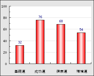 成功運 目的に対する成功運の強さをあらわします。この点数が高いほど自分の思い通りに成功し、逆に悪いと逆境・批判・障害などに苦心します。 76点