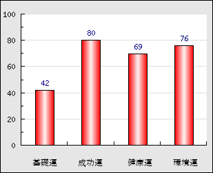 成功運 目的に対する成功運の強さをあらわします。この点数が高いほど自分の思い通りに成功し、逆に悪いと逆境・批判・障害などに苦心します。 80点